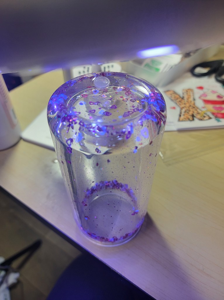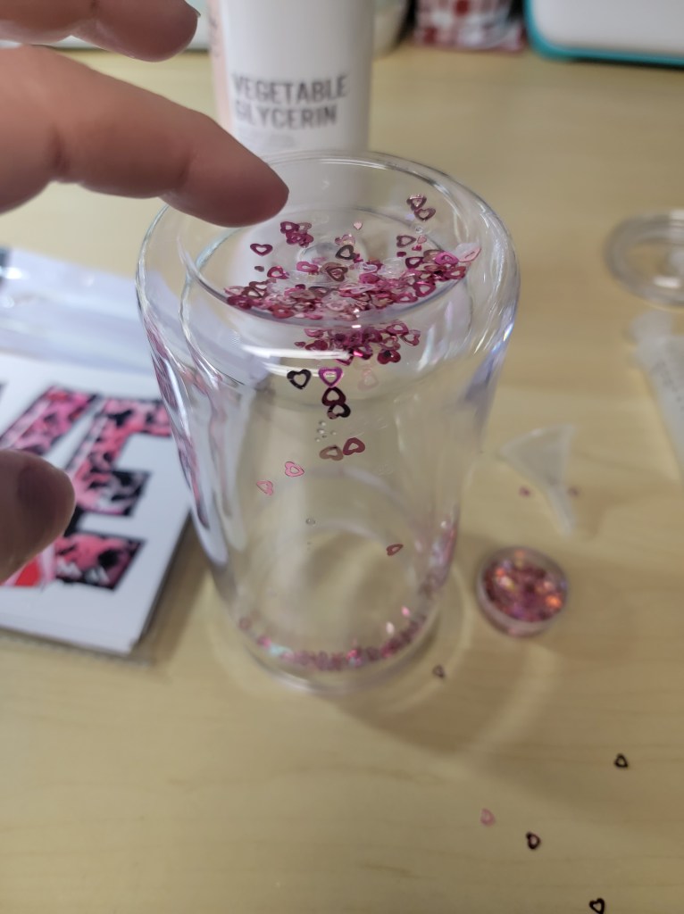 - Add small amounts of glitter or shapes to the tumbler